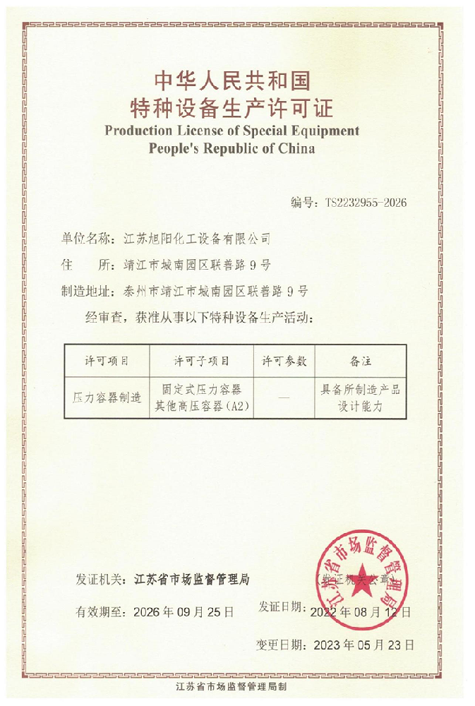江蘇旭陽化工設備有限公司專業(yè)從事各類化工、環(huán)保、制藥、發(fā)酵、食品、新材料、鋰業(yè)等項目設計、制造及壓力容器的生產制造,是一家集研發(fā)、生產和進出口貿易于一體的高科技企業(yè)。